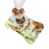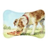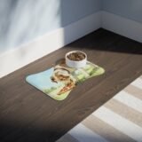 Soft, absorbent feeding mat that brings a playful, storybook charm to your pet’s mealtime. The watercolor-style illustration of a curious dog sniffing a slice of pizza adds warmth and whimsy to floors while practical construction keeps messes contained. Plush polyester top feels gentle on paws and fur, and the memory foam core soaks up spills while providing a cushioned spot for food and water bowls. An anti-slip backing holds the mat steady through eager sniffs and wagging tails. It’s a small, thoughtful upgrade that makes daily feeding cozier and cleaner.